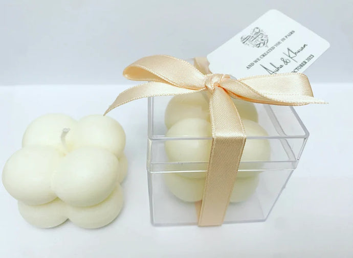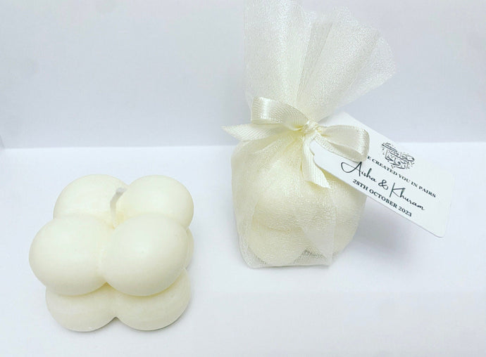 Soy Wax Bubble favour candles wrapped in organza + tag