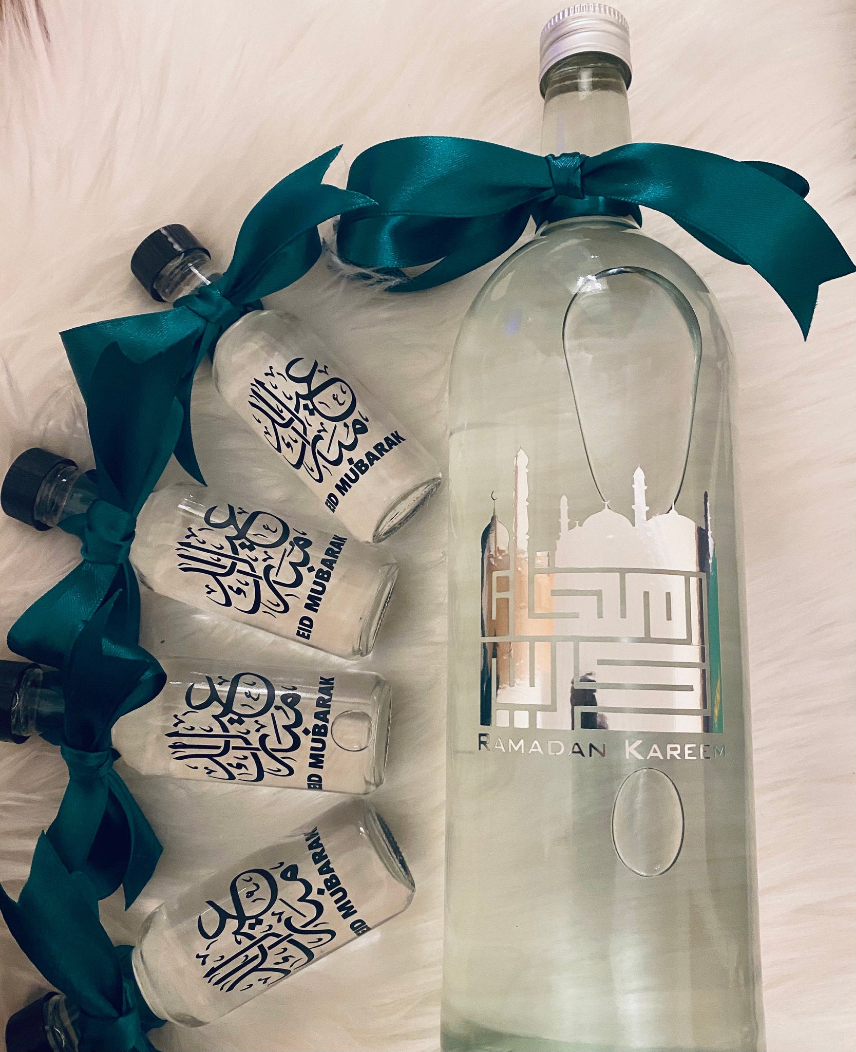 1. Plain bottle (£1.20) - Filled with Zam Zam and comes with bow - not personalised with any text plain bottle