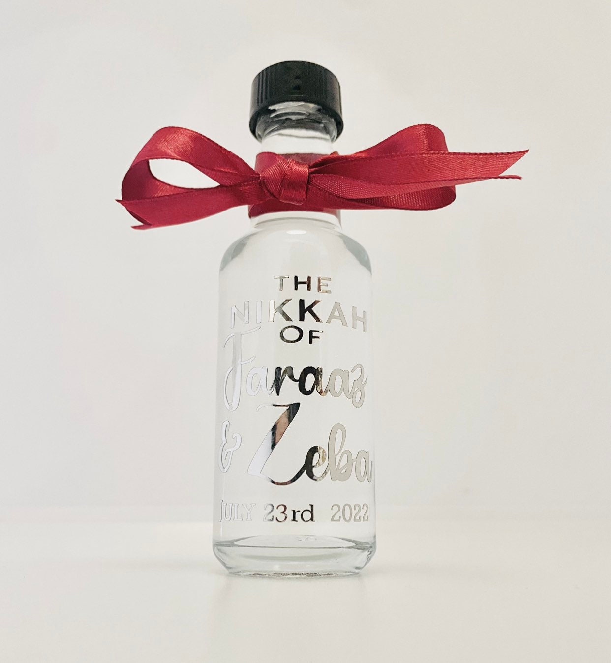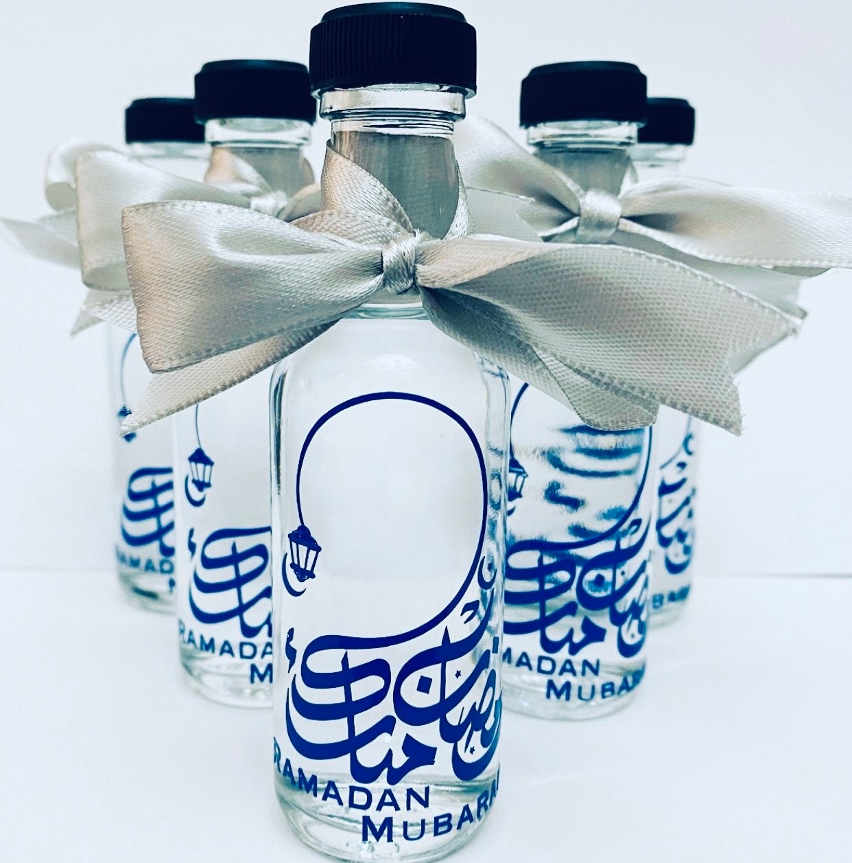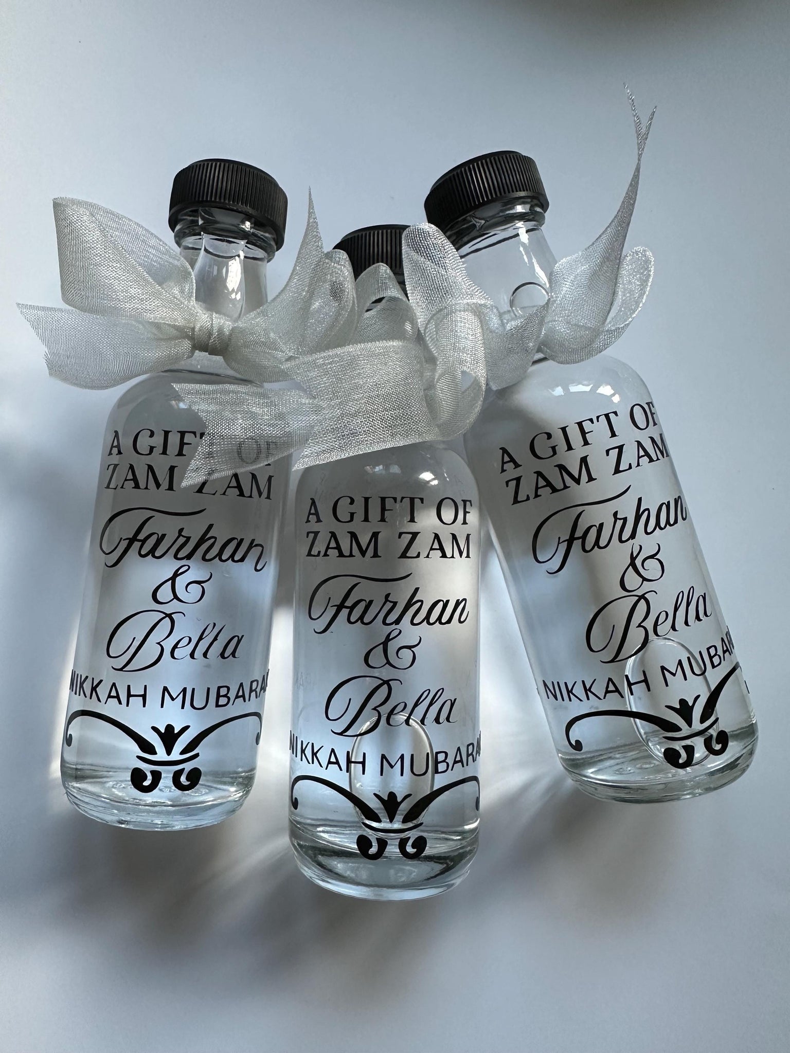 Pure 50ml Zam Zam personalised bottles. These are Glass bottles. We can do any colour bow and writing please confirm details in the personalisation field. These can be purchased FILLED WITH ZAM ZAM WATER OR EMPTY.